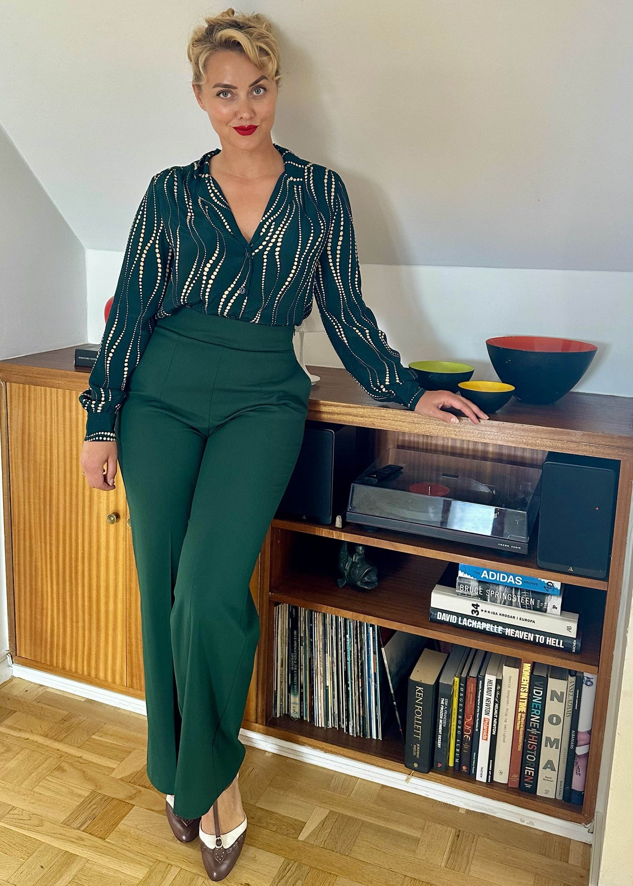 • Bær skjorten med de flotte højtaljede bukser