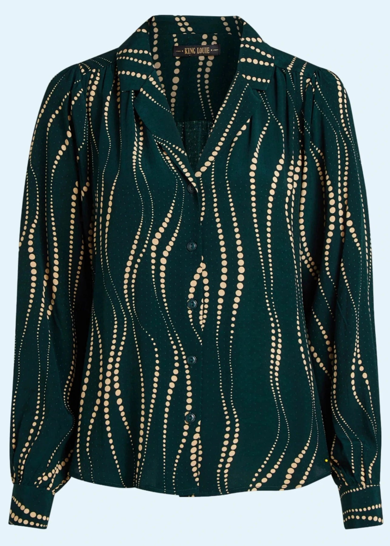Elegant skjorte fra King Louie i mørkegrøn med beigefarvet prikmønster.