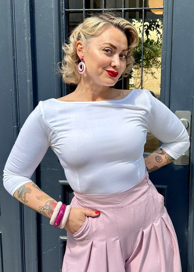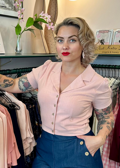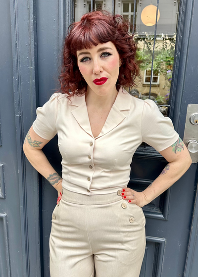 Til dig, der ønsker noget andet end kjoler, byder Daisy Dapper også på retro buksedragter og højtaljede bukser. Disse styles er inspireret af 40’ernes arbejdsuniformer og 50’ernes glamourøse loungewear.
