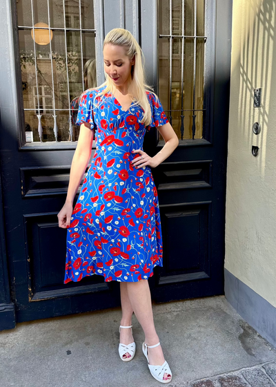Er du på udkig efter en ny blå kjole i retro eller vintage stil - det kan være en blå slåom kjole, skjortekjole, swing kjole eller pencil kjole , så finder du den her!
