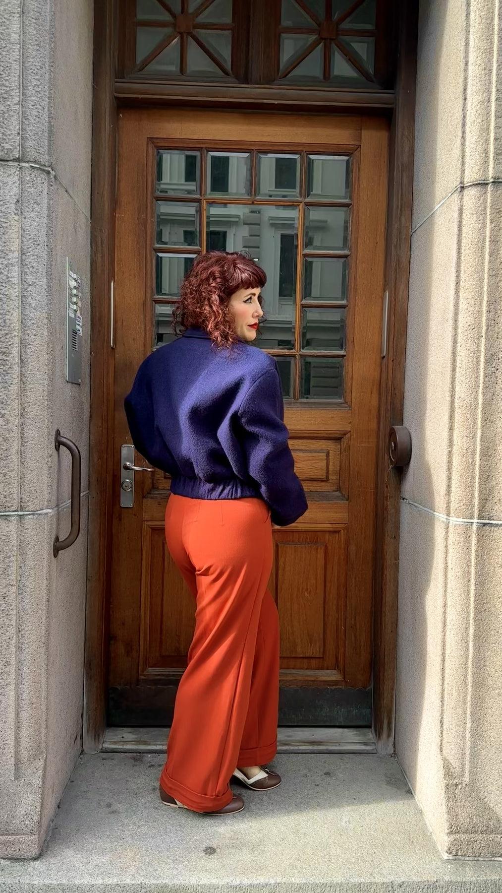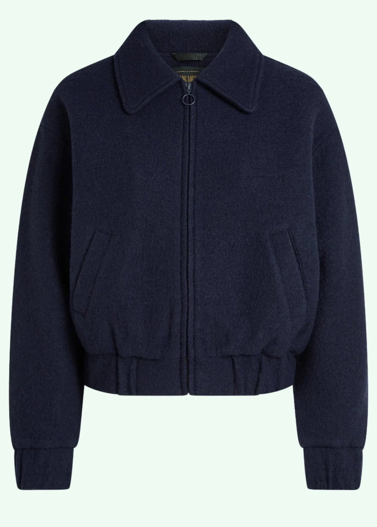 En kort jakke til overgangssæsonen i navy uld, og behagelige elastiske kanter som giver form og holder på varmen.