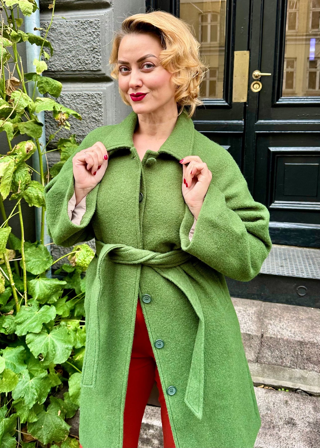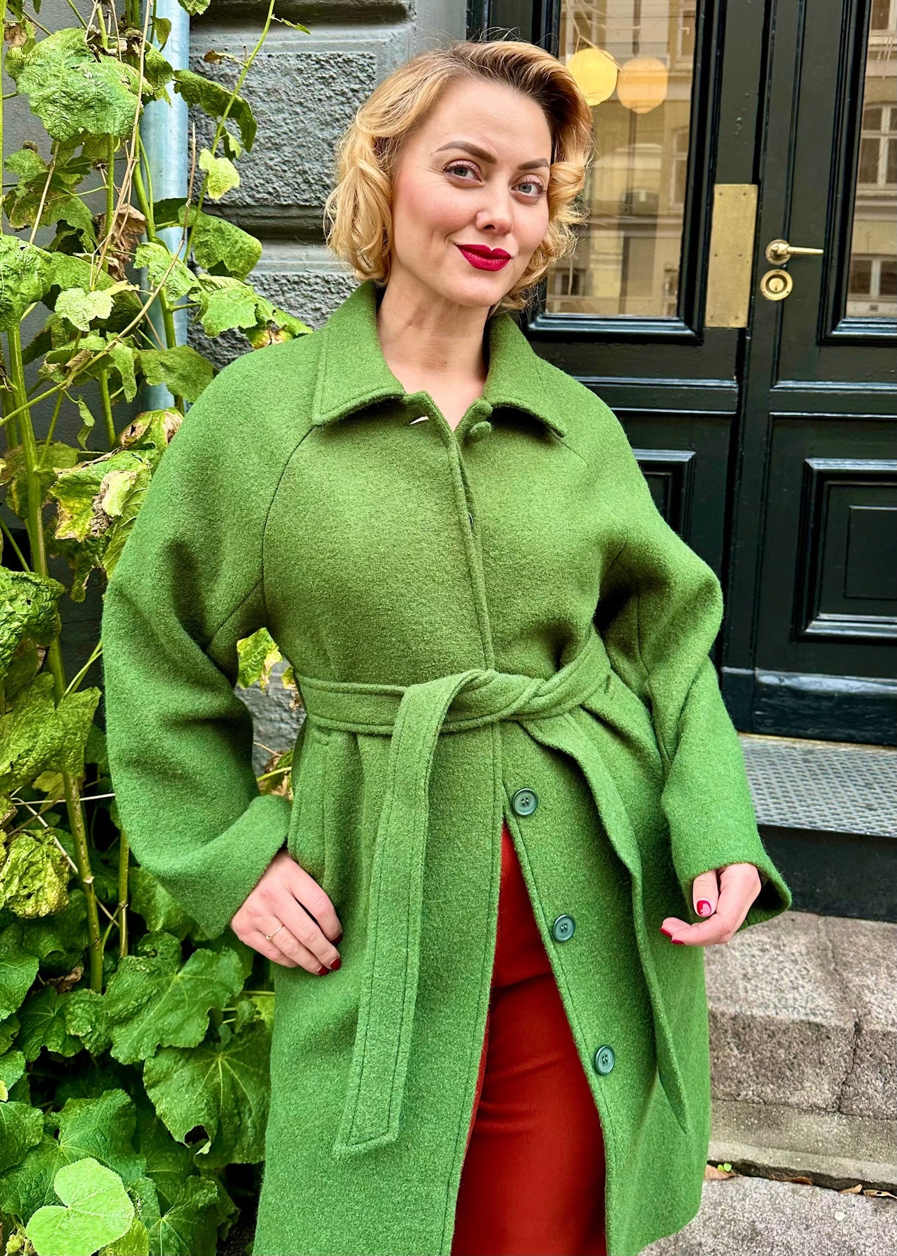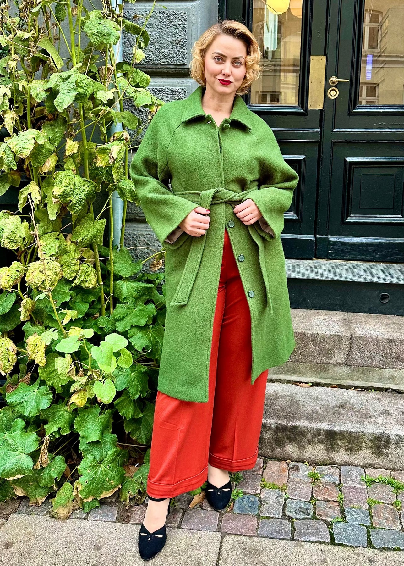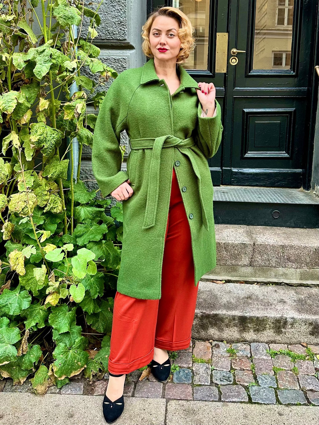 Vinterfrakke i 100% grøn uld fra Very Cherry