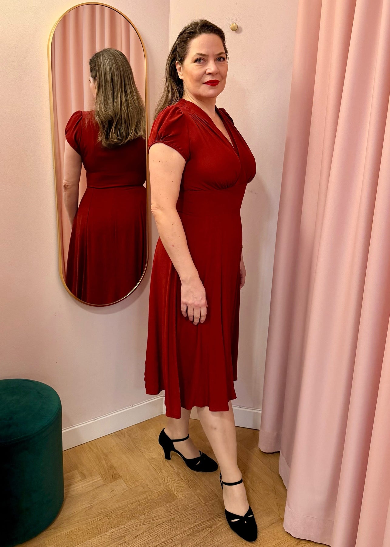 Ava er klart en af vores bestseller kjoler og nu er den her i en smuk mørk rust farve.