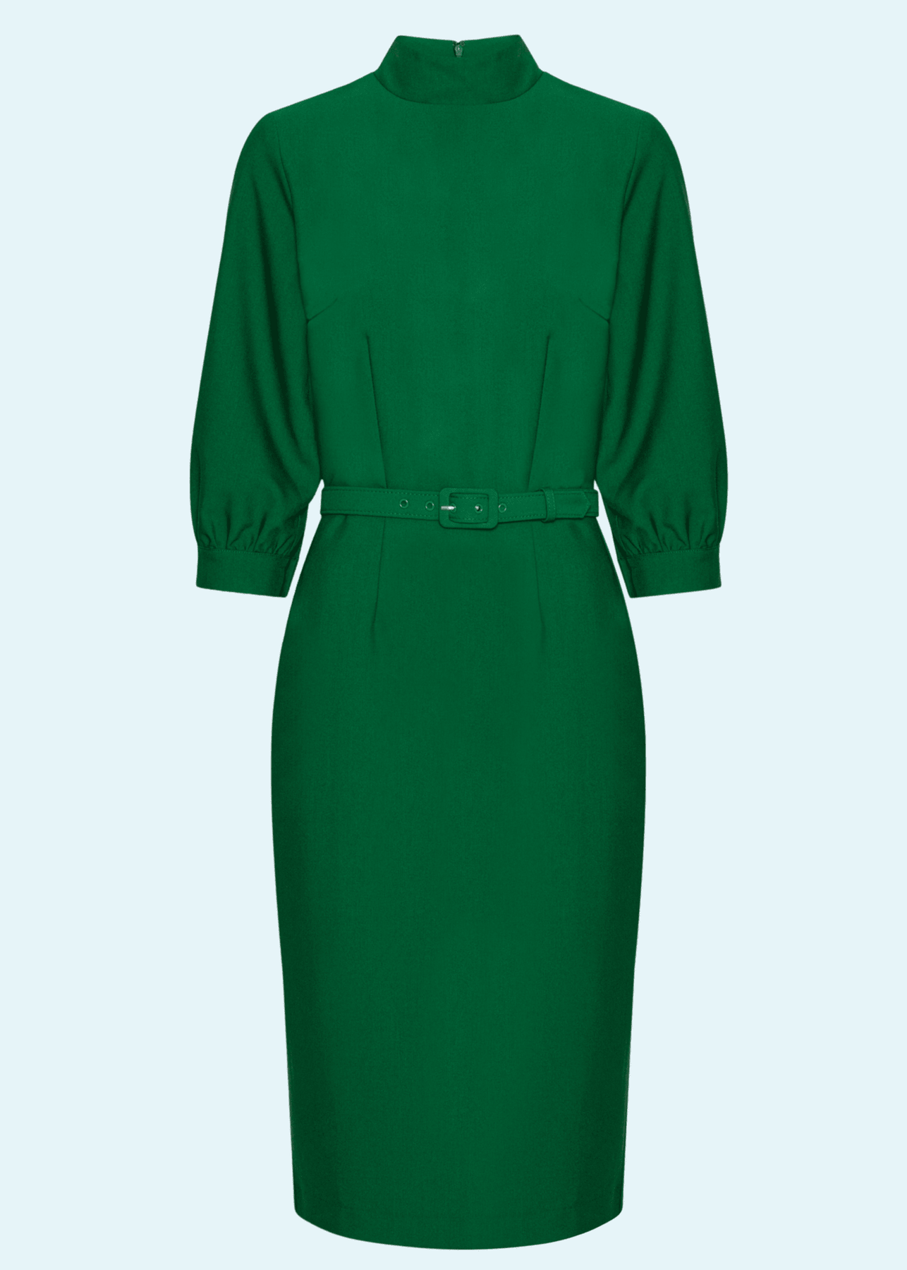 Audrey højhalset pencilkjole med 3/4 ærmer - grøn