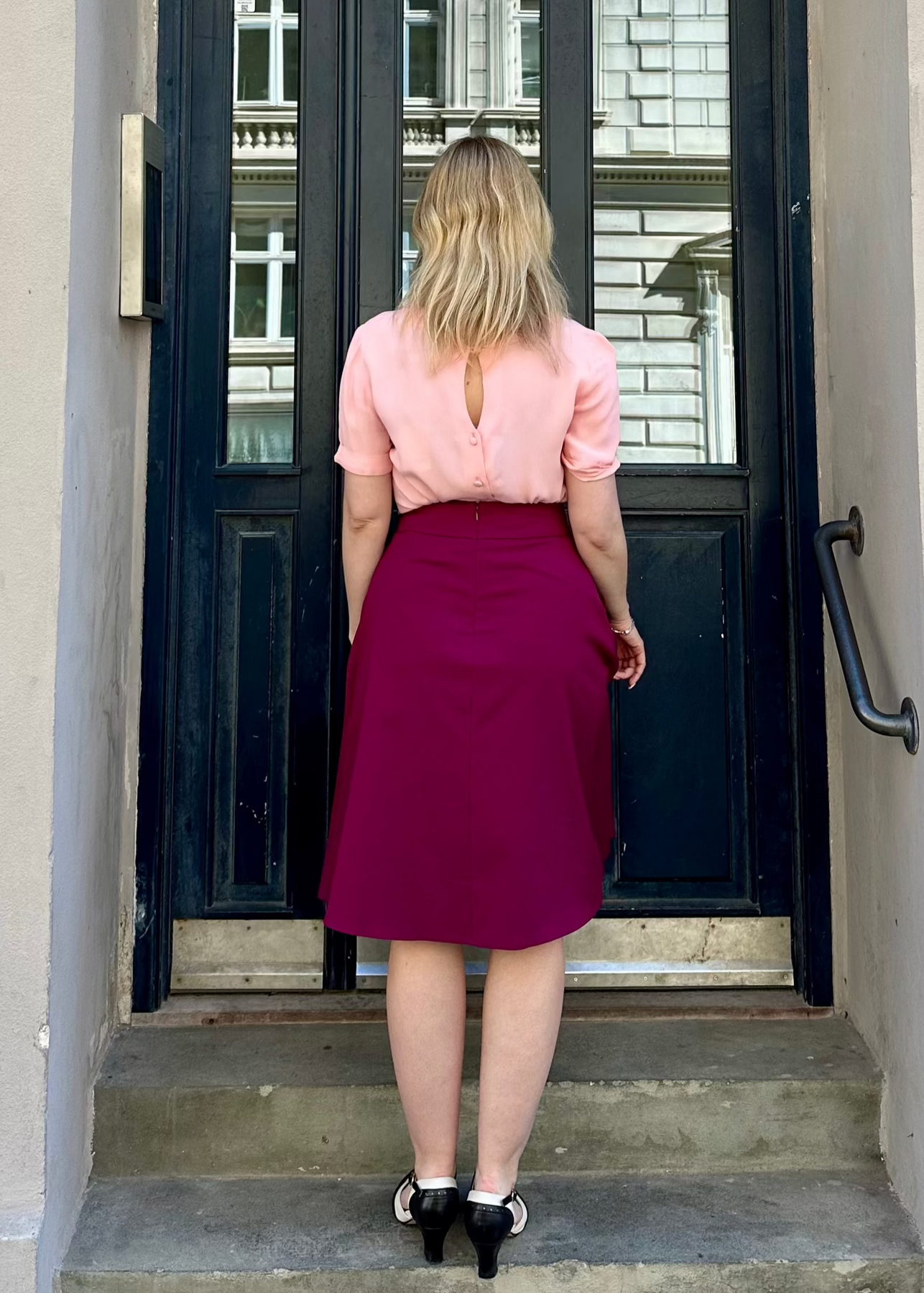 Forfra er skjorte ren 30'er/40'er stils elegance men det slutter ikke der. Bagpå knappes skjorten med betrukne knapper til det karakteristiske vintage look.