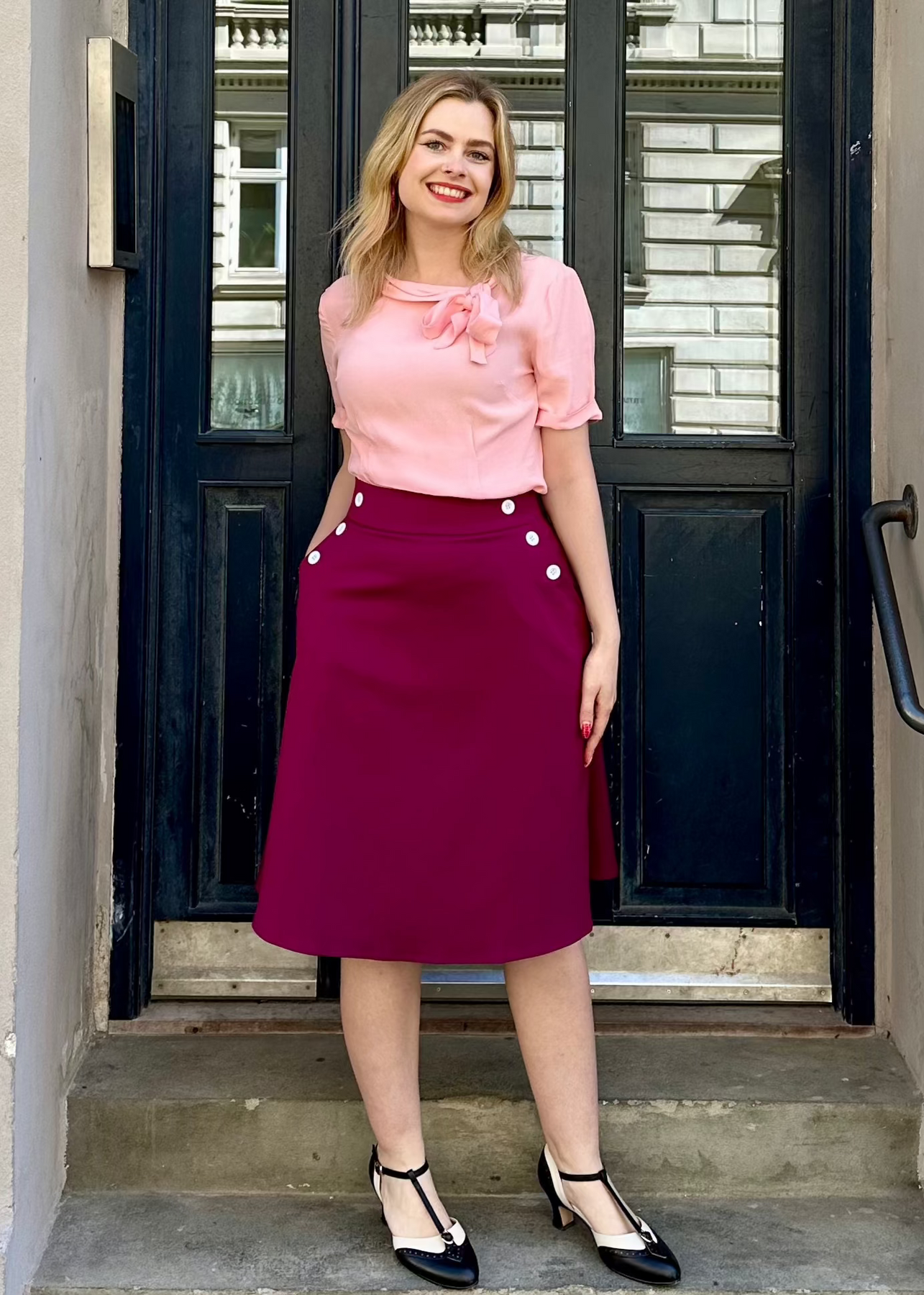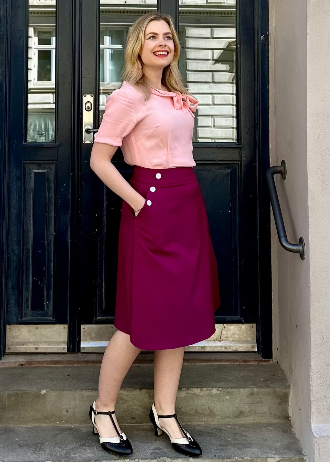 En klassisk vintage stils skjorte i lyserød, perfekt til dine højtaljede nederdele og bukser.