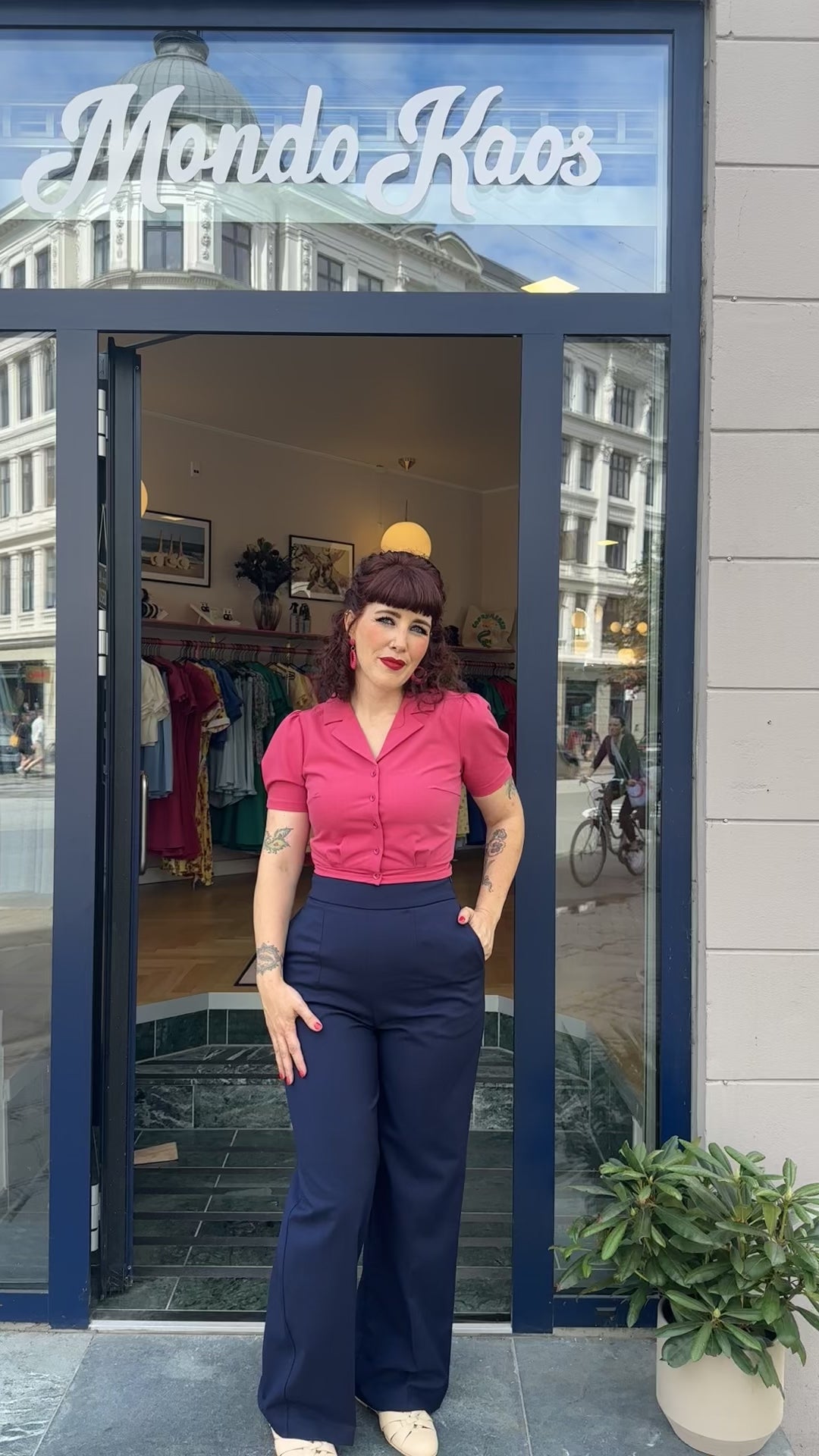 Uanset hvilken type kortærmet bluse, skjorte eller t-shirt du er efter, om den er til dit feminine jakkesæt, dine seje jeans til et edgy rockabilly look, et gennemført klassisk vintage look, et lille retro touch til dit hverdags outfit eller en højtaljet swingnederdel til dans, så har vi den i Mondo Kaos!