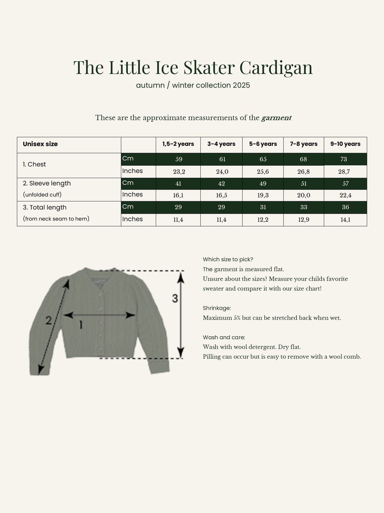 Emmys kunder har efterspurgt den i mange år, og nu er den her! The Ice Skater cardigan som ingen bør være foruden - heller ikke de små. Det er de velkendte snoninger, puf ved skuldrene og høj halslukning som giver den helt rigtige vintage vibe. Cardiganen er lidt længere og ikke nær så tætsiddende som voksenudgaven, så den er super behagelig til udendørs leg.
