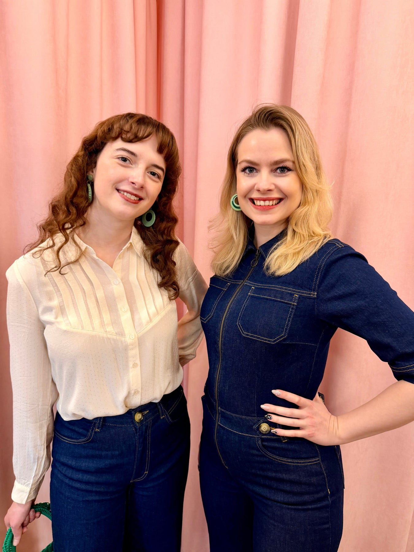 Simona er 163 cm høj og har buksedragten på i str 36. Kathleen er 165 cm høj og har buksedragten på i str 34.