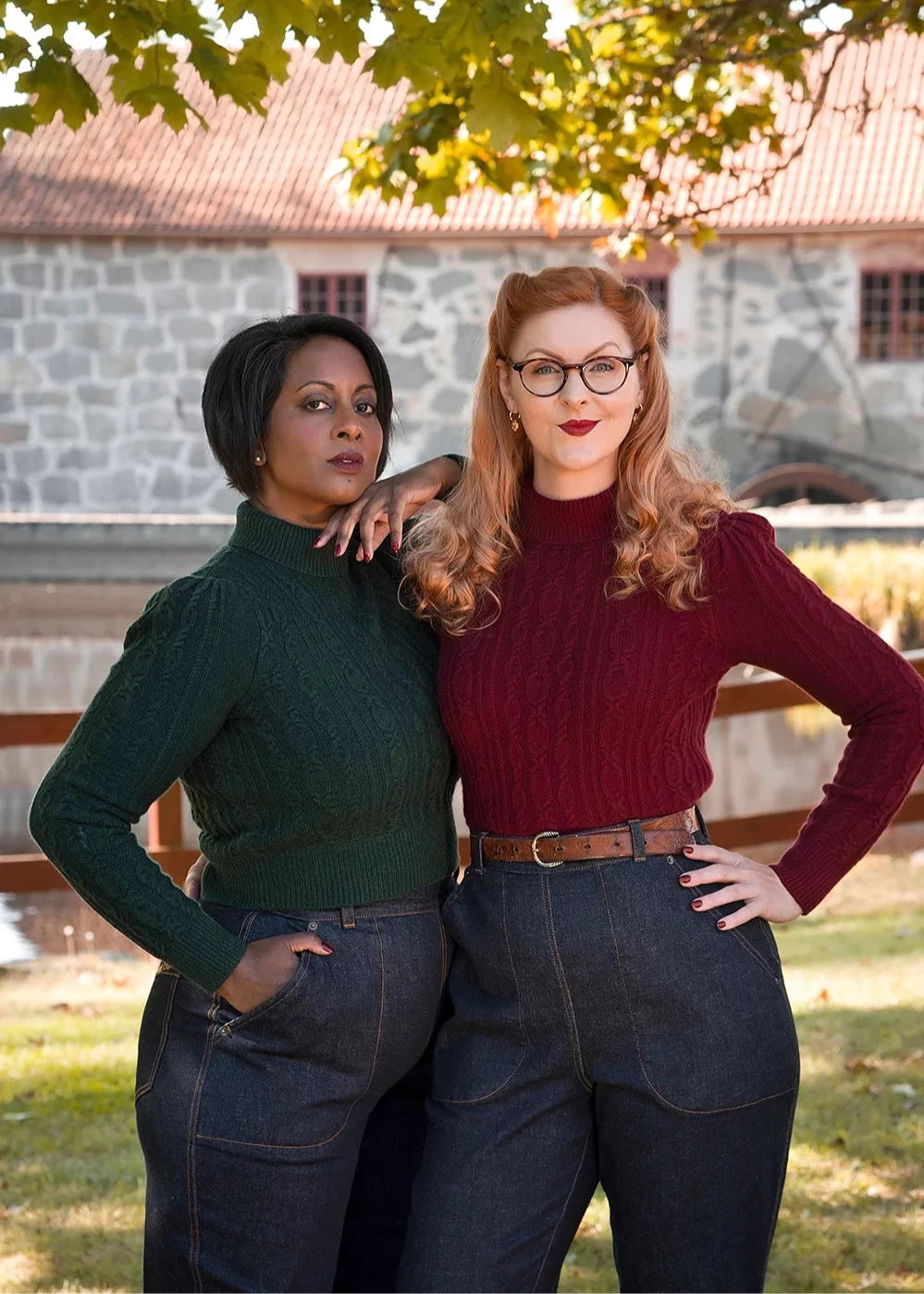 Ice Skater Sweater har en høj hals med en ombukket krave som sidder flot i halsen. Sweateren lukkes i siden med en knaprække som går fra halsen og ud på skuldren i autentisk og elegant vintage stil.