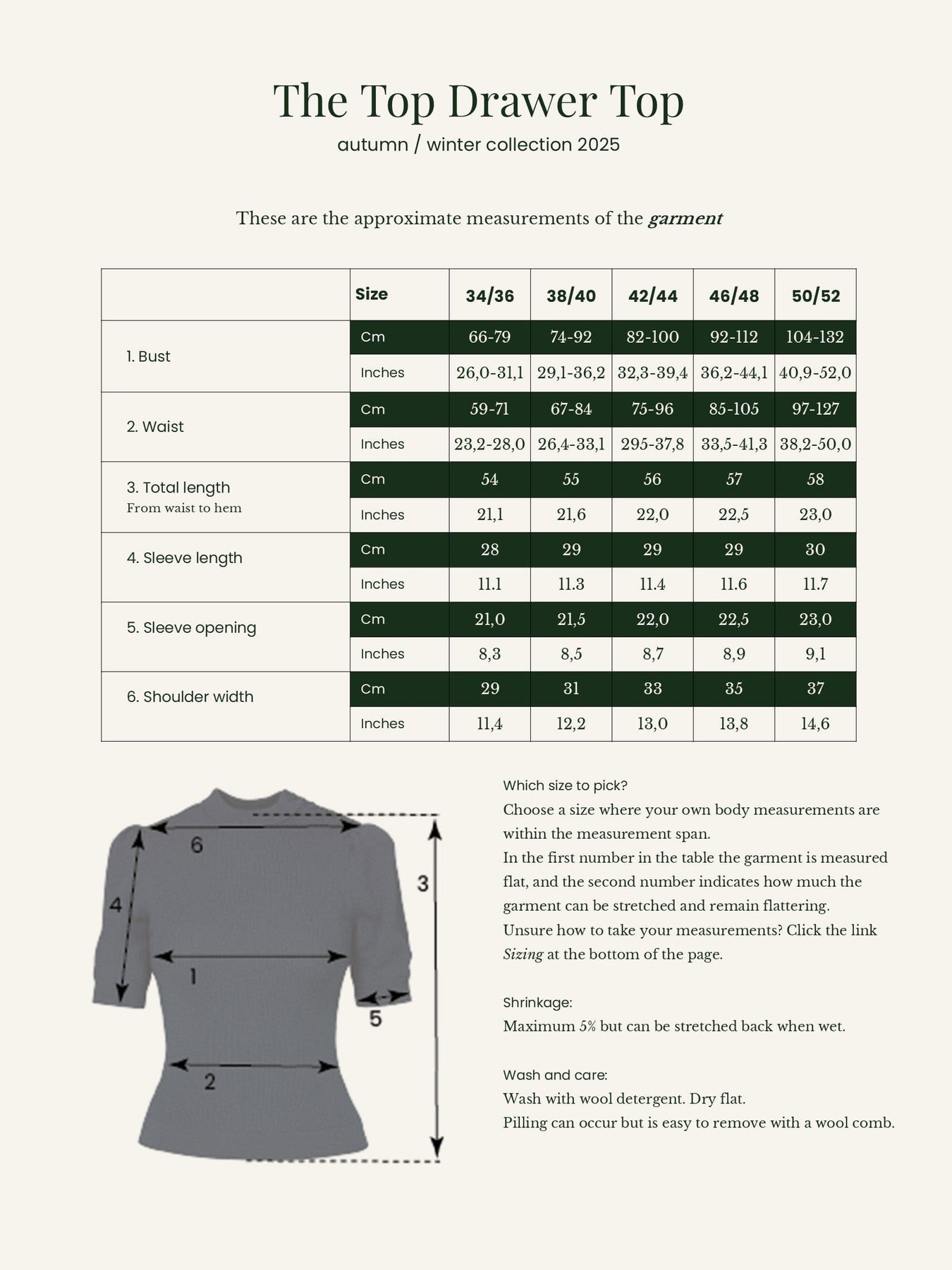De korte ærmer har puf ved skuldrene, og afslutter med en lille ribkant, som giver mulighed for at give fylde til de fine ærmer. Blusen er i den skønneste bløde og lette merinould, og er lavet til at sidde flot indtil kroppen og understrege timeglasfiguren.