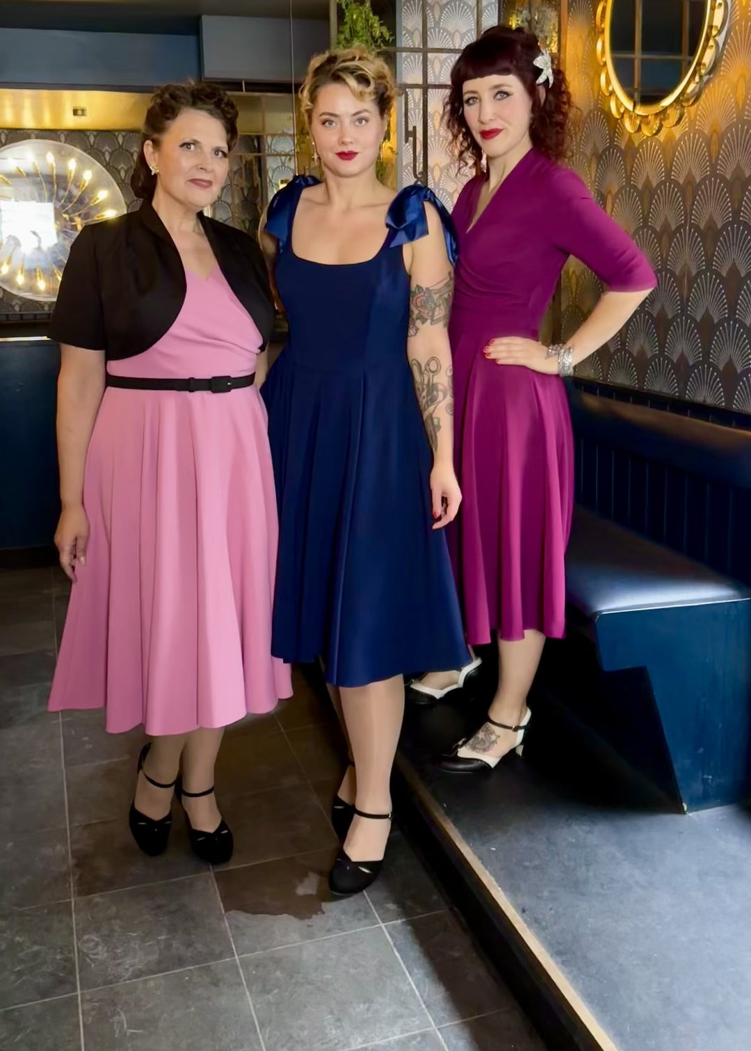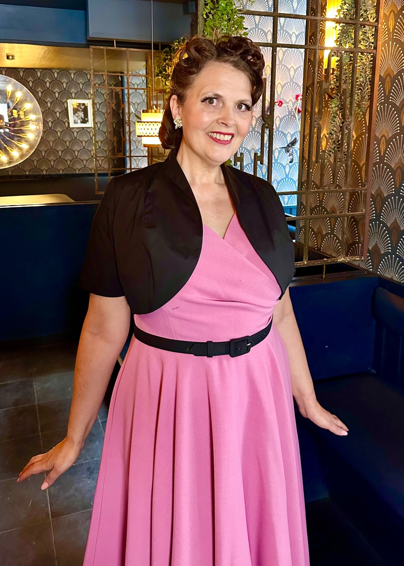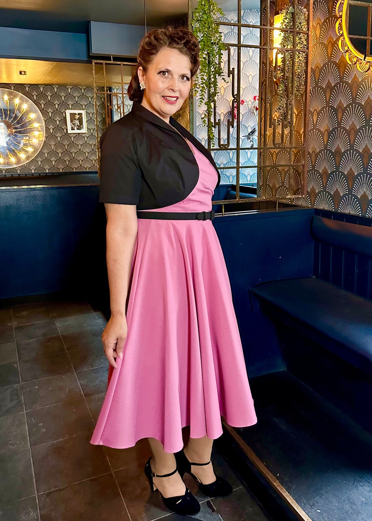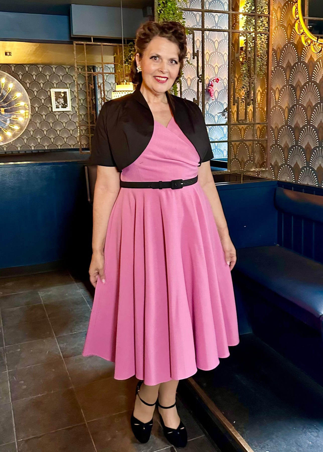 Vintage stils swingkjole i støvet pink fra The Pretty Dress Company.