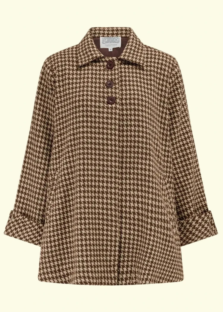 Den smukke frakke er skabt ud fra et original 40s design 'Swagger Coat'. Den har en fin lille krave, som passer skønt i de enkle linjer som giver denne frakke sit smukke vintage look.