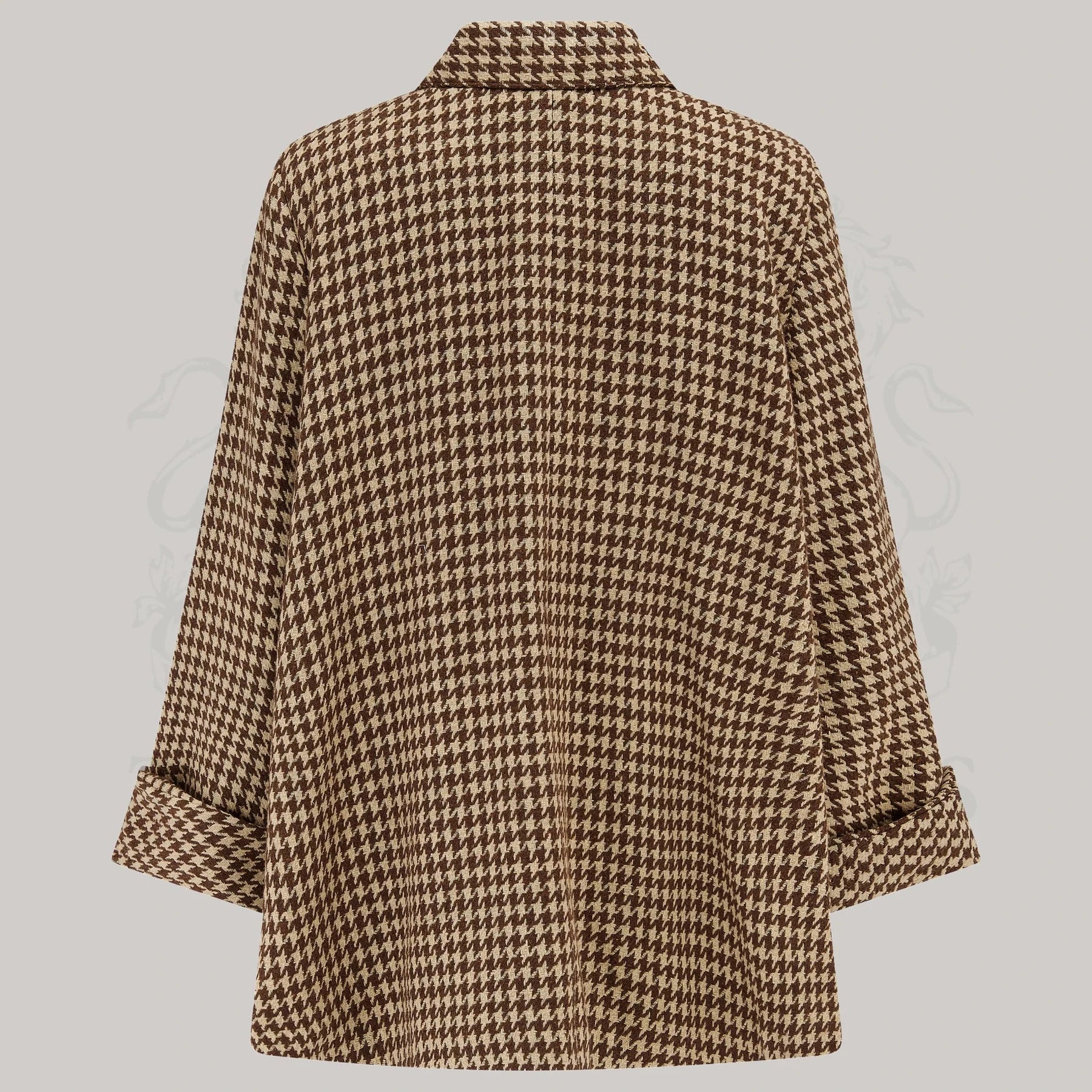 Frakken er lavet i 100% ny uld i et smukt klassisk hanefjedsmønster (Hounds tooth) og den er foret i skøn satin.