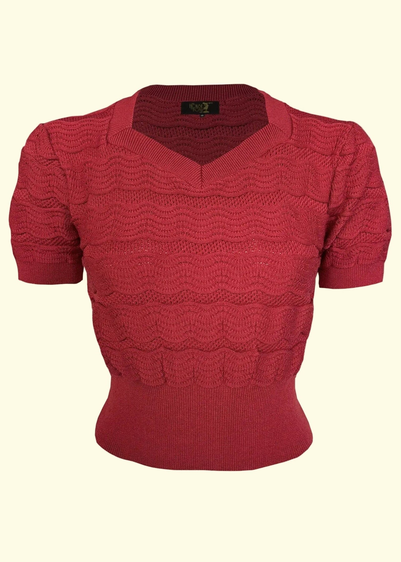 Sweetheart Sweater'en fra the House of Foxy er indbegrebet af 1940’ernes feminine elegance – en klassisk, men samtidig let og anvendelig strik, der smukt forener vintageæstetik med moderne komfort. Den ikoniske sweetheart-udskæring, det fine bølgede pointelle-strik og den let cropped pasform skaber en flatterende silhuet, der fremhæver taljen og klæder de fleste kropstyper.