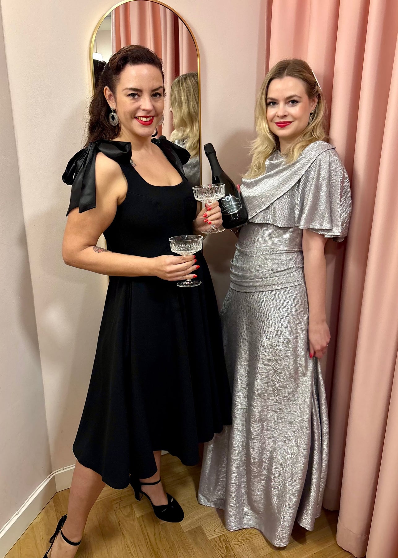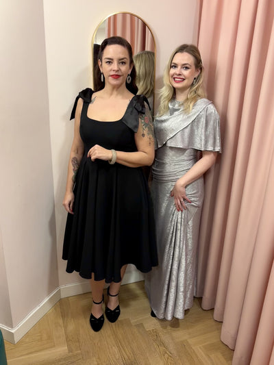 De fine satin-sløjfer på skuldrene (aftagelige) tilfører et strejf af glamour, mens stretch-foret i overdelen hjælper med at definere taljen med en let cinched effekt. Josephine er designet med dybe lommer, en skjult lynlås i ryggen og en smuk struktur, der gør den både komfortabel og stilfuld.
