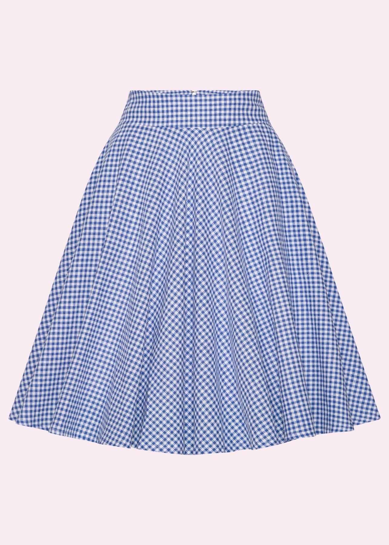 Vintage inspireret 1950'er stils swingnederdel i blå og hvide gingham tern fra Daisy Dapper.