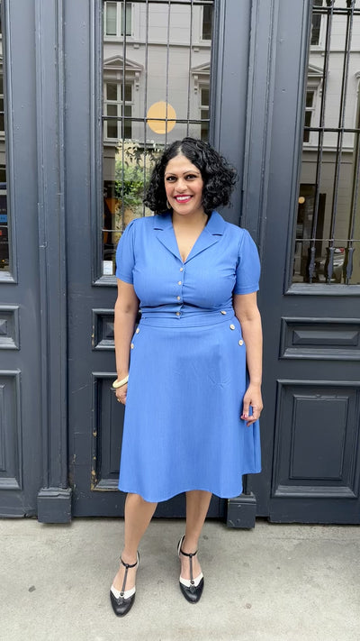 Knapperne i kokos sidder i sailor stil foran på nederdelen, giver et fint vintage look.