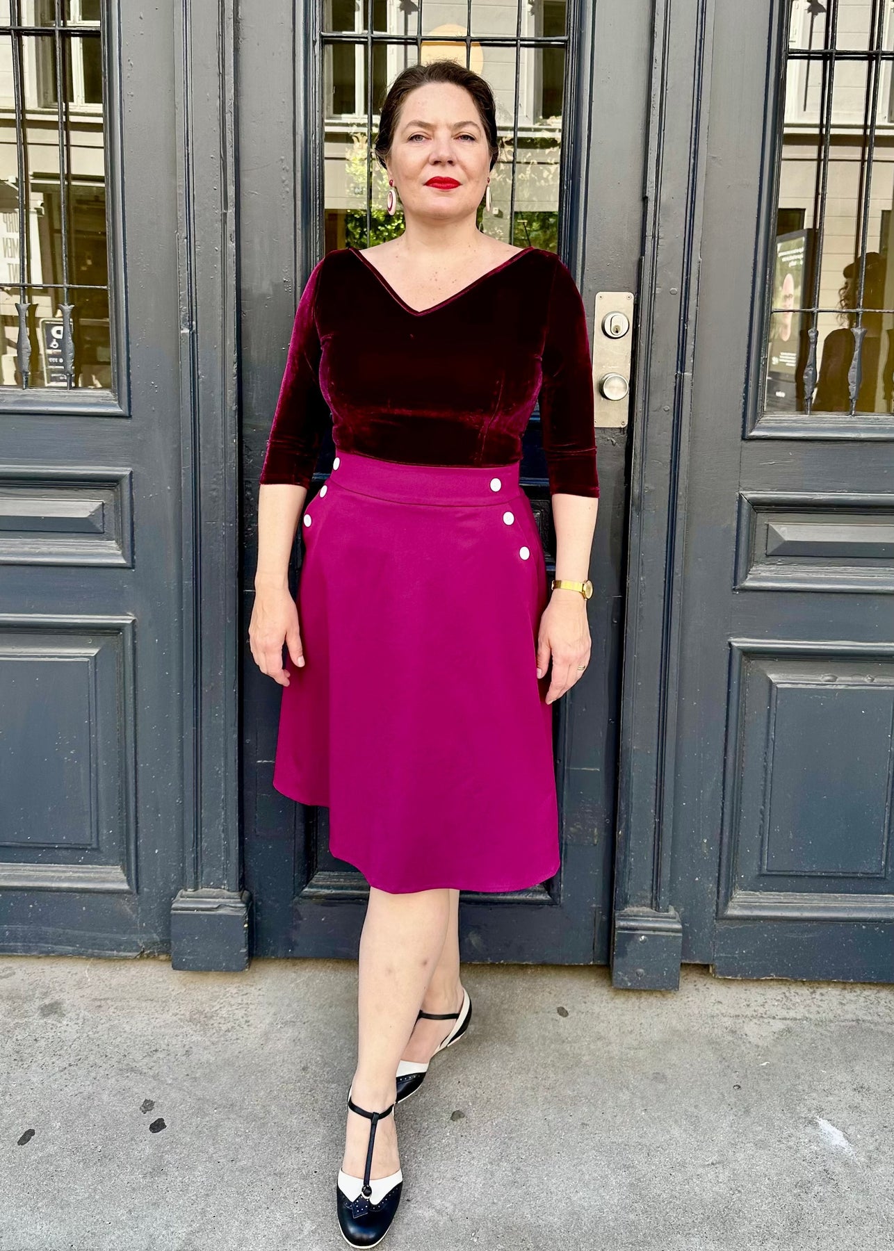 A-line nederdel med knapper i magenta aline nederdel Daisy Dapper