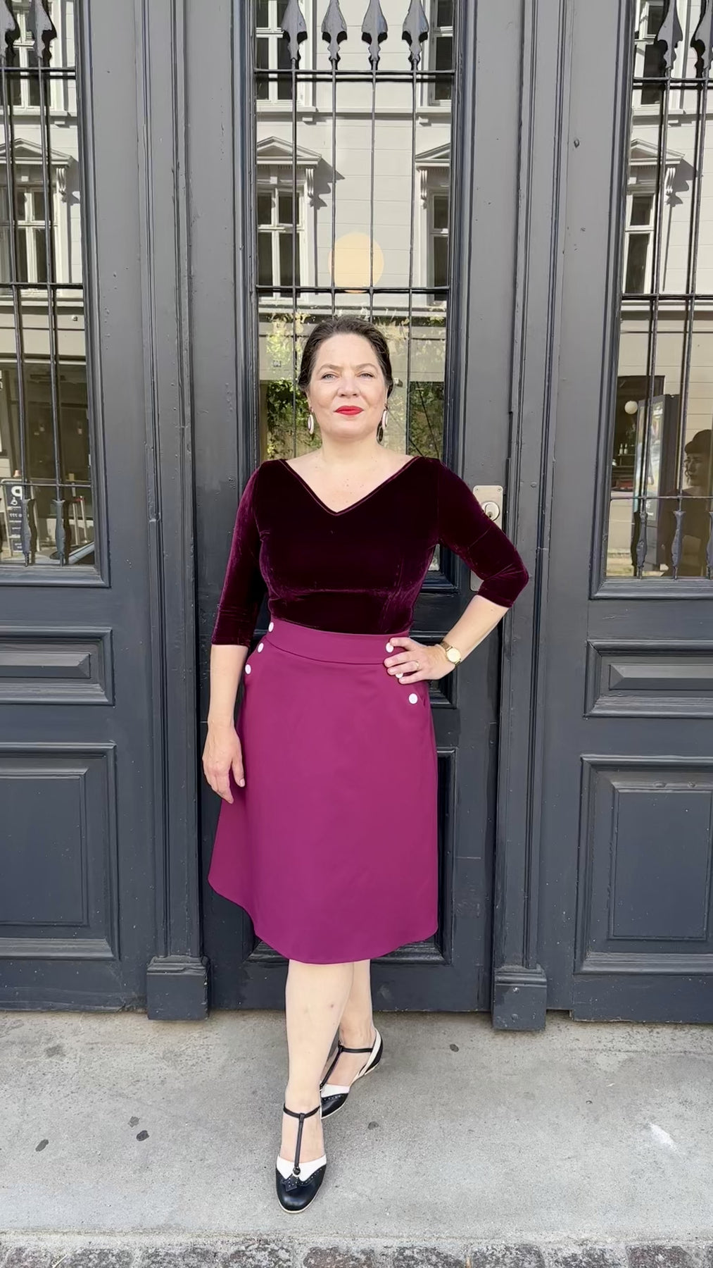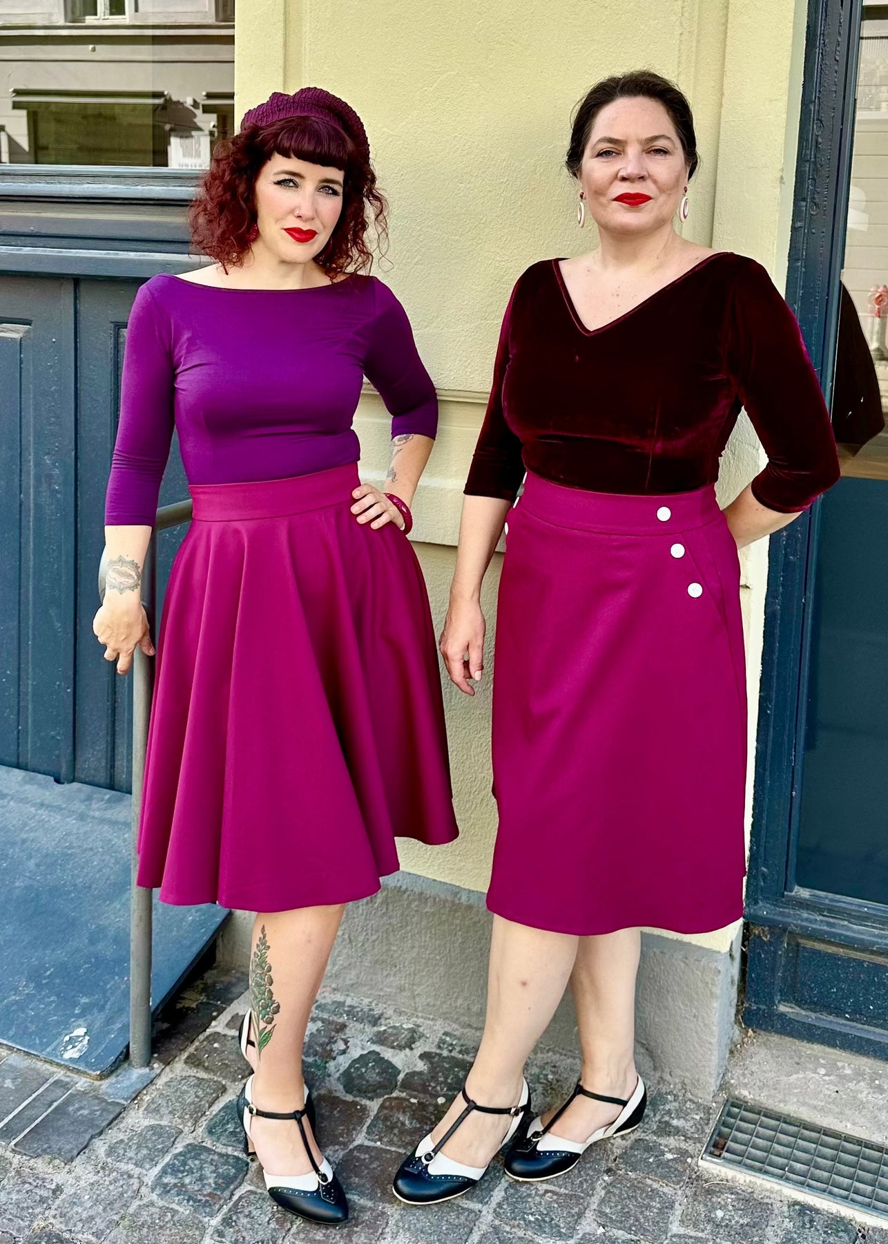 Den intensive farve giver rig mulighed for at matche med enten neutrale farver, eller sætte ekstra kulør på tilværelsen med fx en mønstret top. Du kan også vælge en cool 1940's vibe med en sort top.