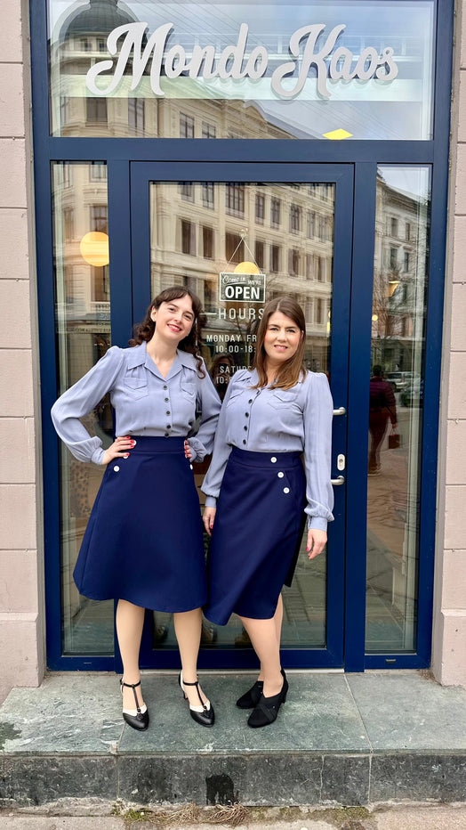 Knapperne foran på nederdelen giver et fint vintage look i sailor stil.