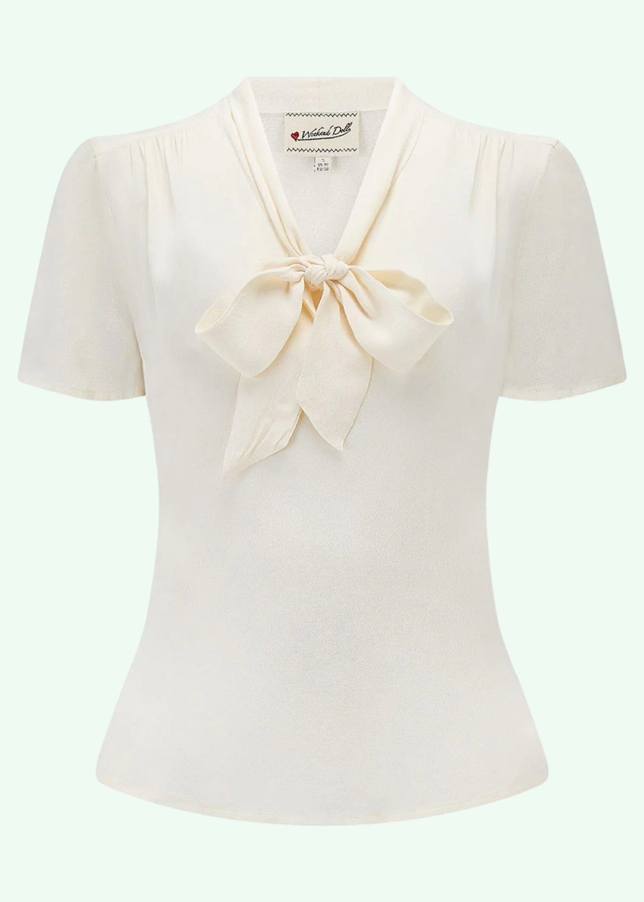 Skøn bluse med lille pussy bow, ideel til dit retro look.