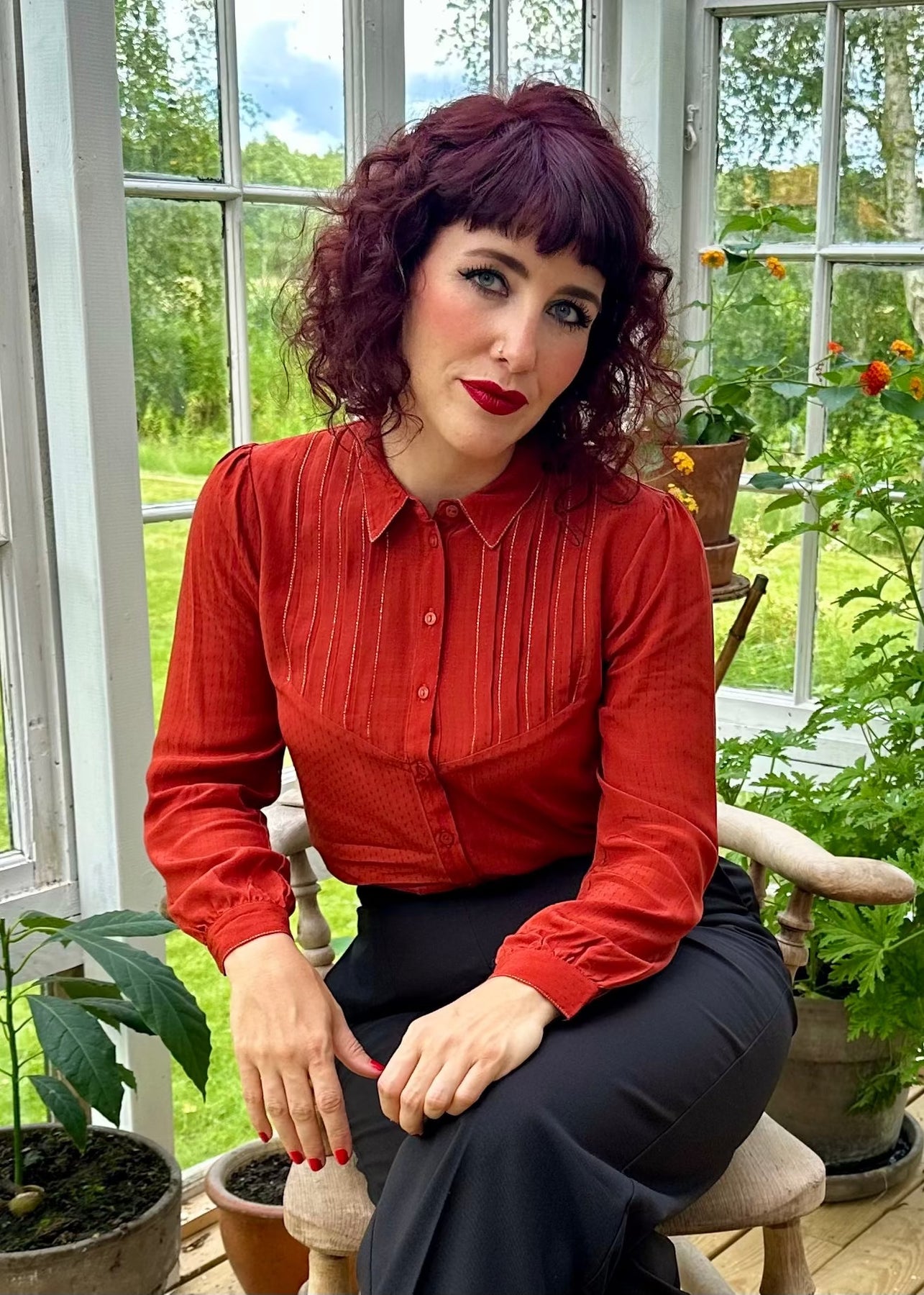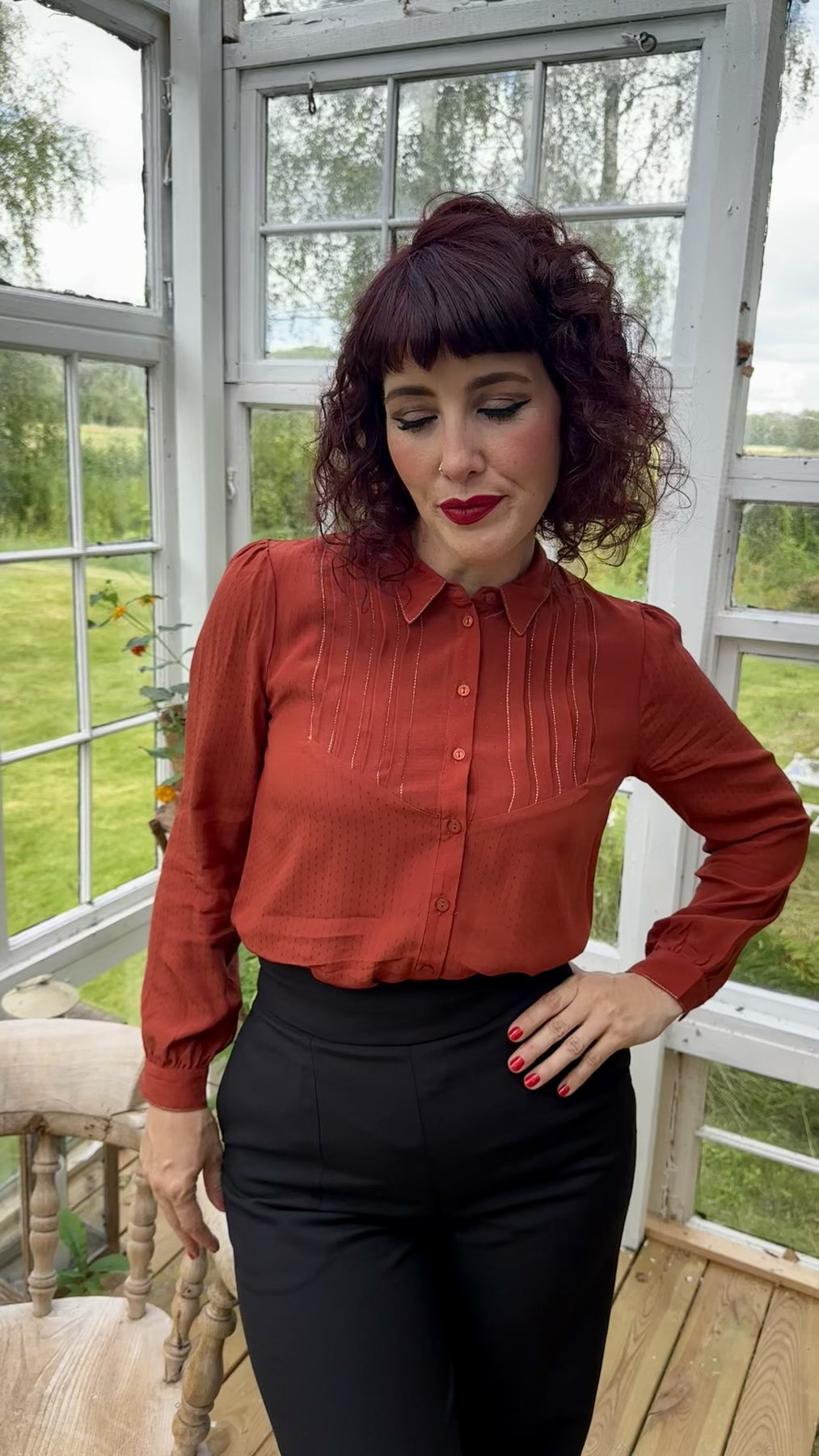 En oplagt bluse til dig, der ønsker at tilføje lidt ekstra luksus og vintage-følelse til hverdagen eller kontorlooket.