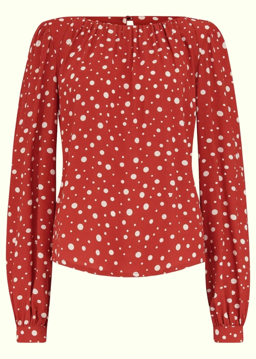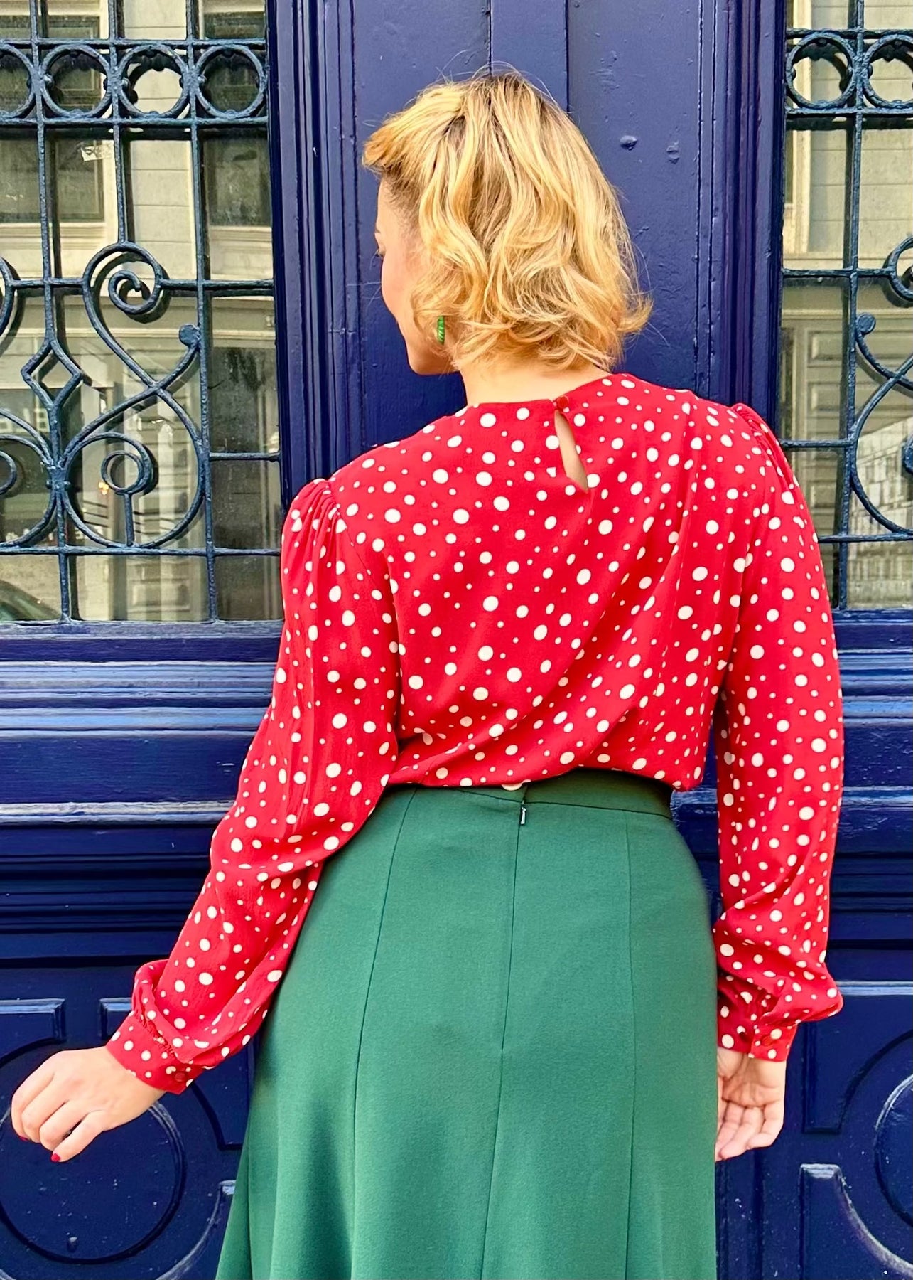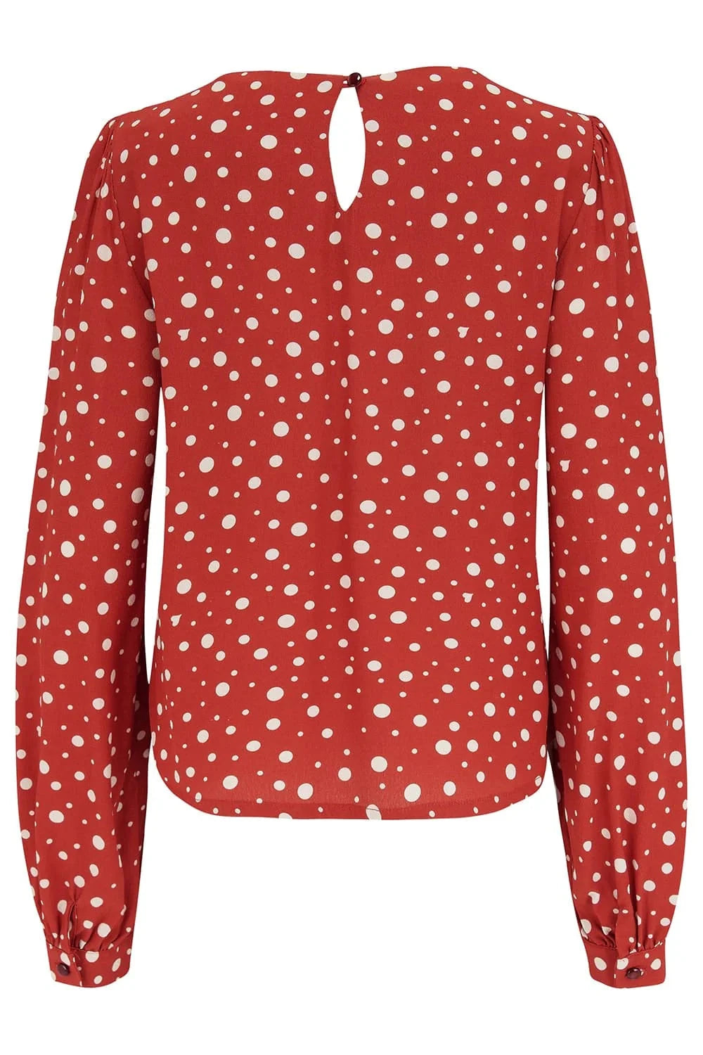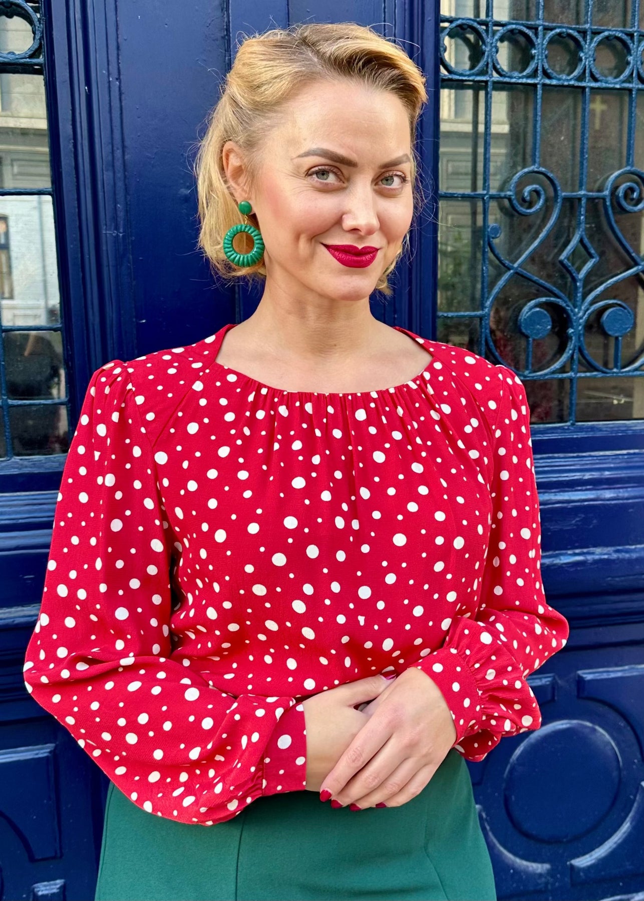1940'er inspireret skjortebluse fra Weekend Doll i rød med hvide polkaprikker.