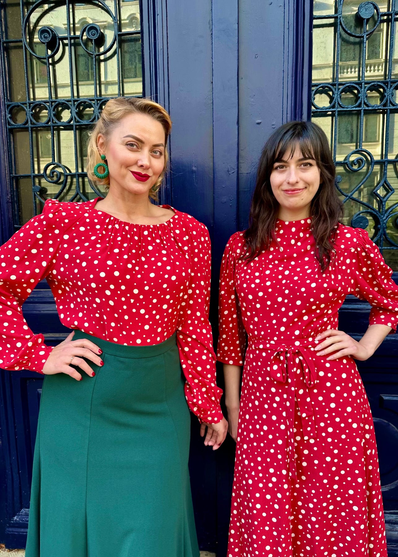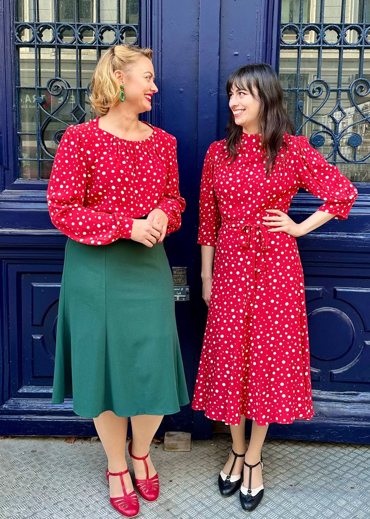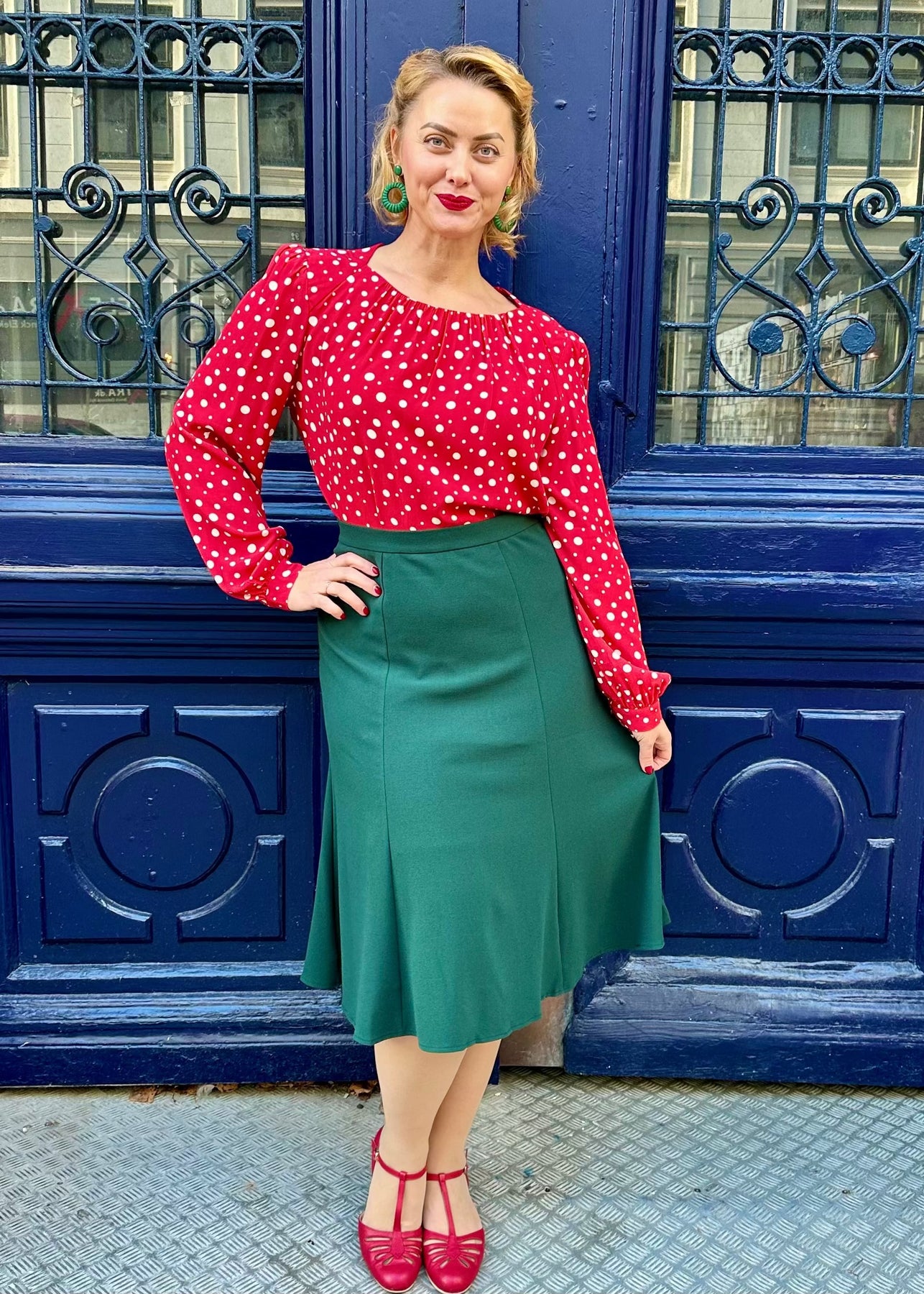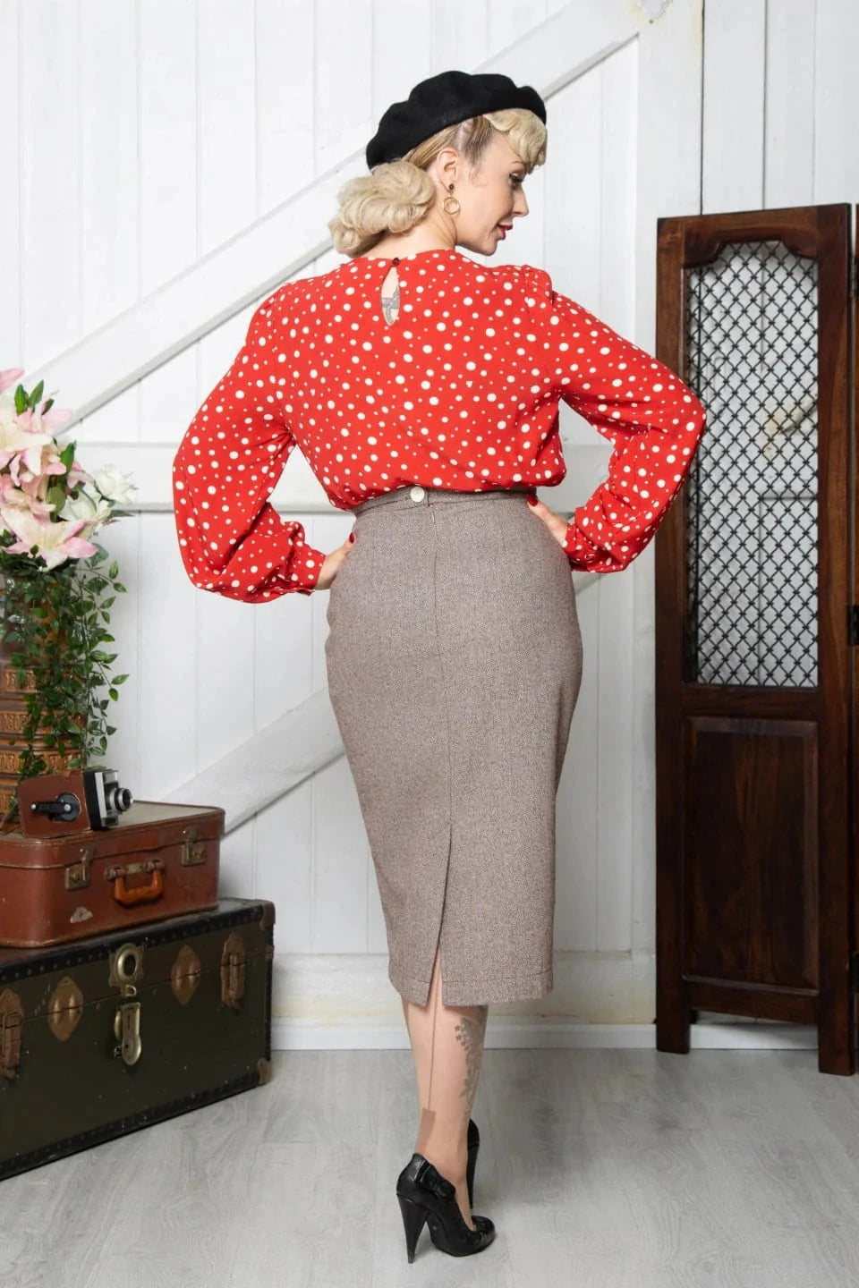 1940'er inspireret skjortebluse fra Weekend Doll i rød med hvide polkaprikker.
