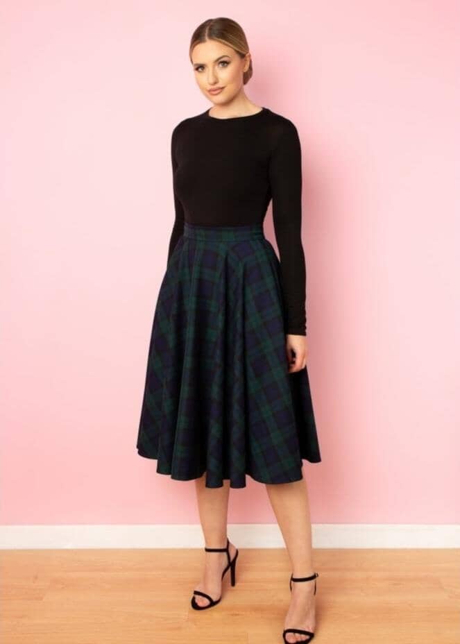 1950'er stils swing nederdel i ternet flannel fra Pretty Dress Company.