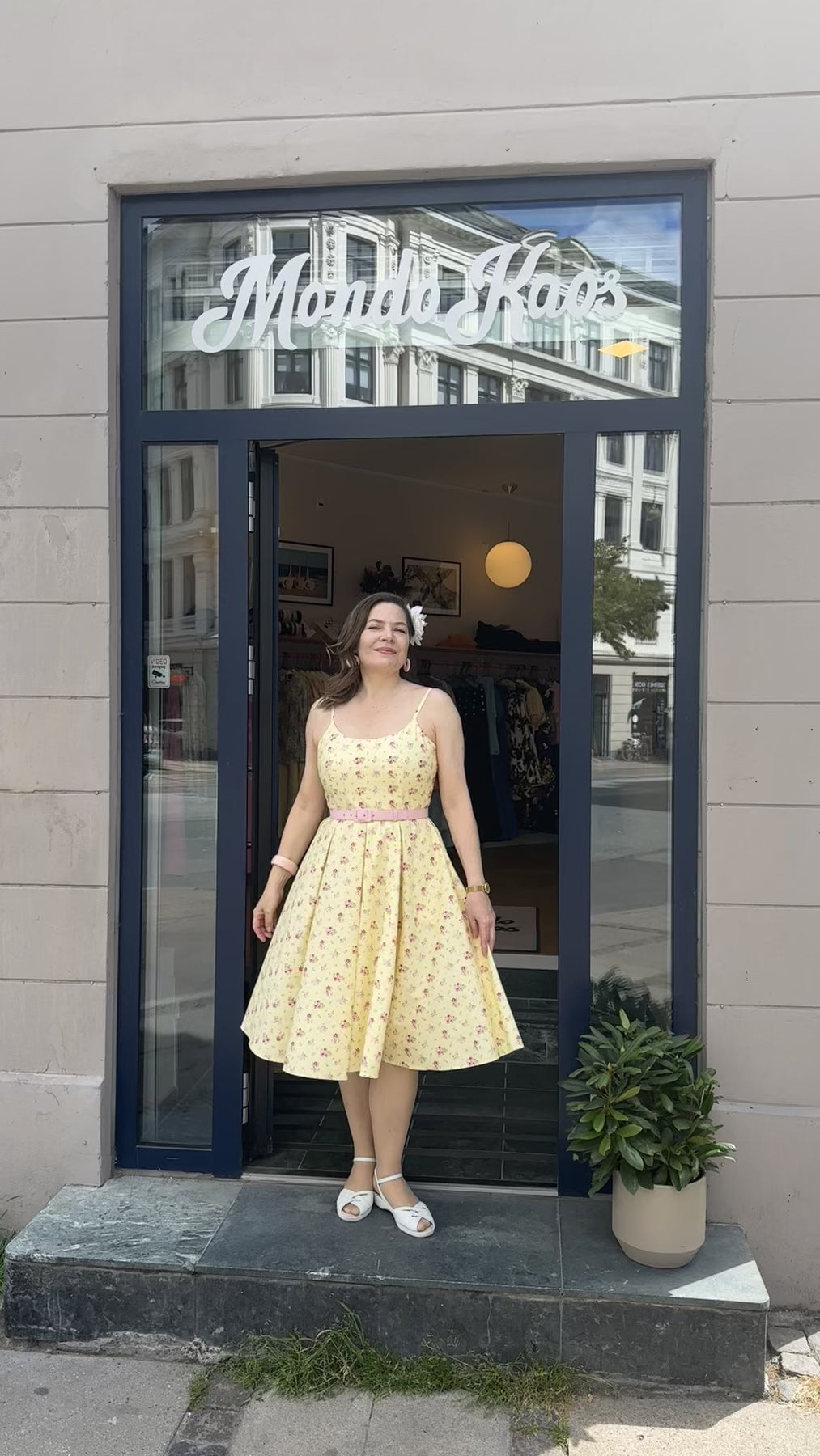 Priscilla swingkjole i lys gul med roser Kjoler Pretty Dress Company