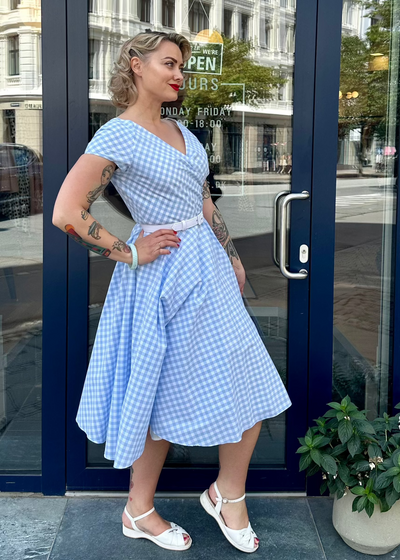 Kjolen har et autentisk 1950'er swingskørt med flotte brede læg, som får kjolen til at falde flatterende omkring hofterne.