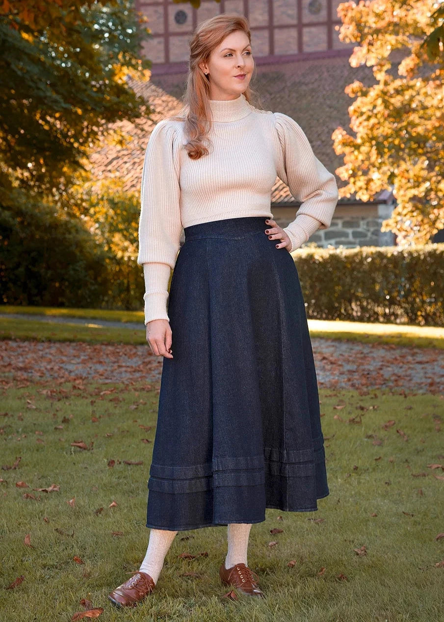 Denne elegante midi skirt er inspireret af de banebrydende kvinder i 1910’erne, der for første gang vovede sig ud i nederdele over anklerne.