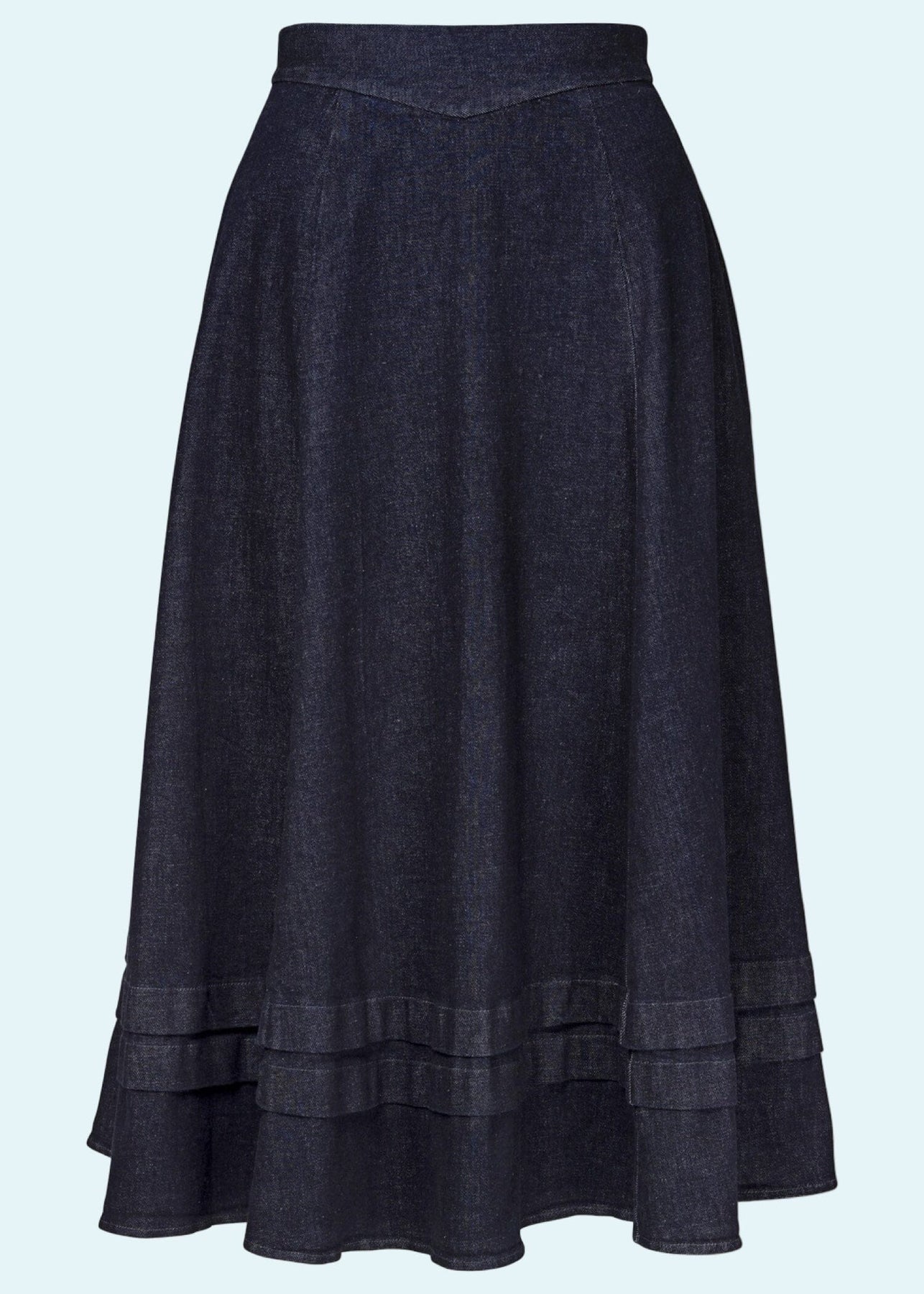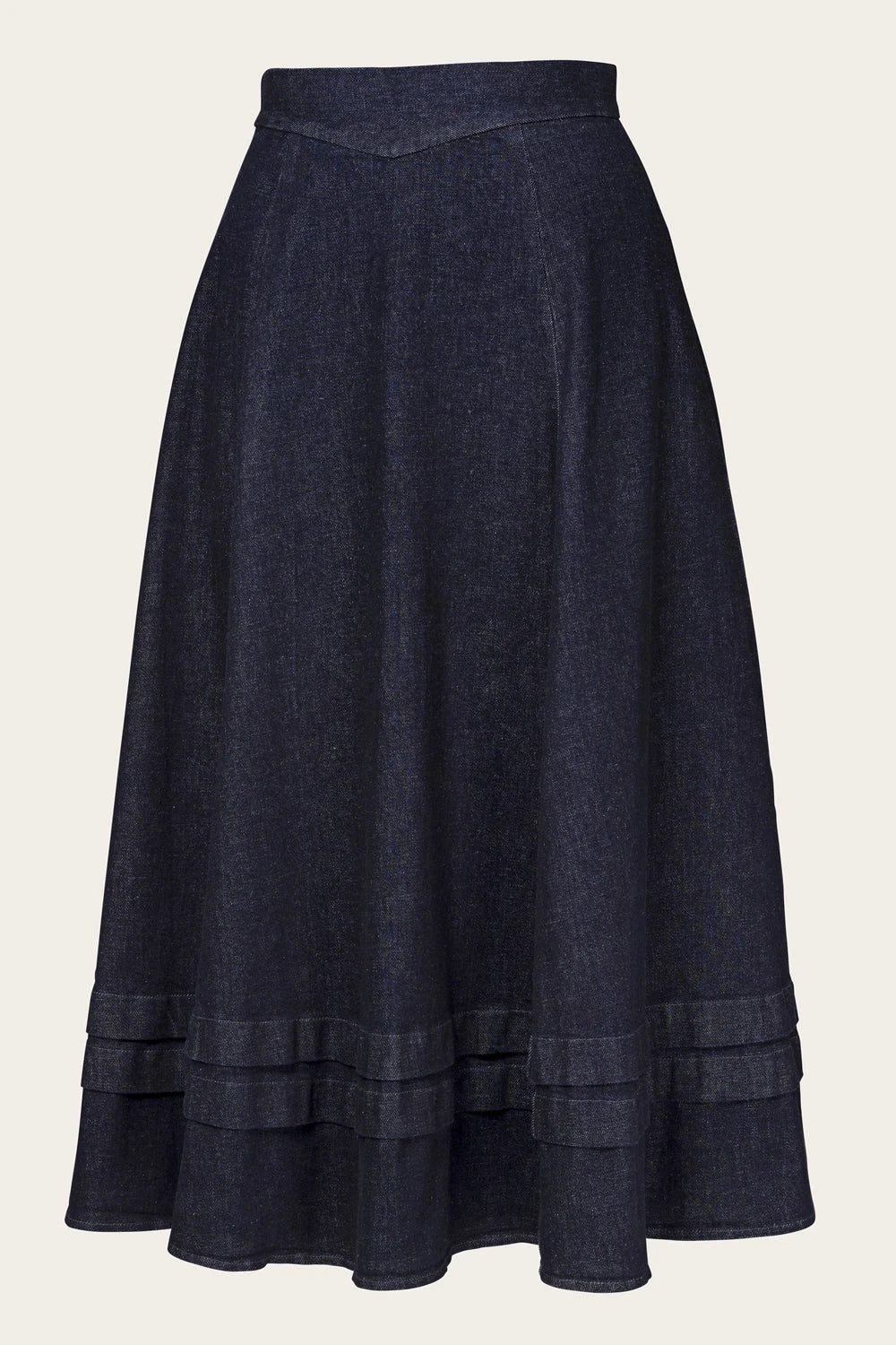 Lad dig inspirere af 1910’ernes banebrydende mode med denne elegante midi nederdel. Med V-formet linning, bløde læg og skjulte lommer kombinerer den historisk charme med moderne praktiske detaljer.
