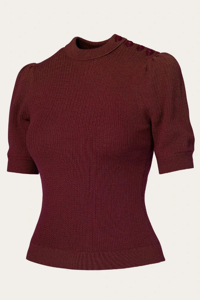 Kortærmet vintage stils striksweater med pufærmer og knapper på skuldren.