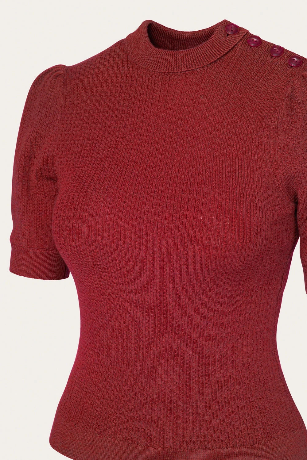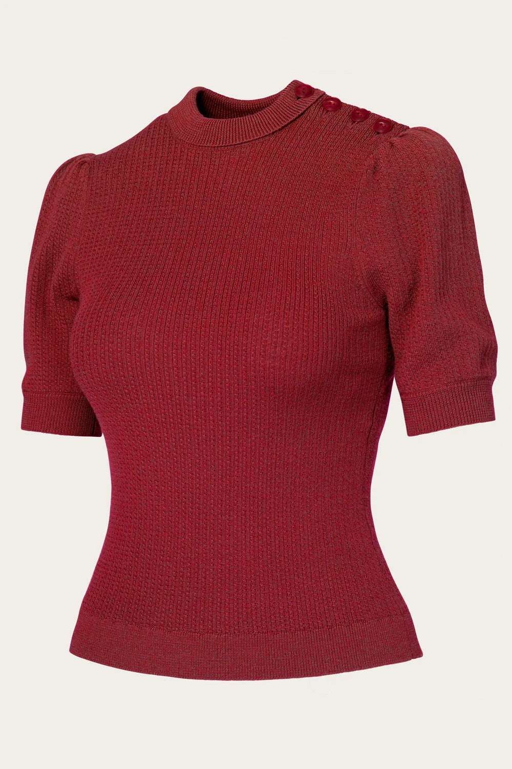 Den skønne dybe granatæble røde farve passer smukt til dine vintage garderobe, hvad enten du går efter et sort og rødt fatale-agtigt 1940'er look, eller vælger at matche med neutrale og bløde jordnuancer.